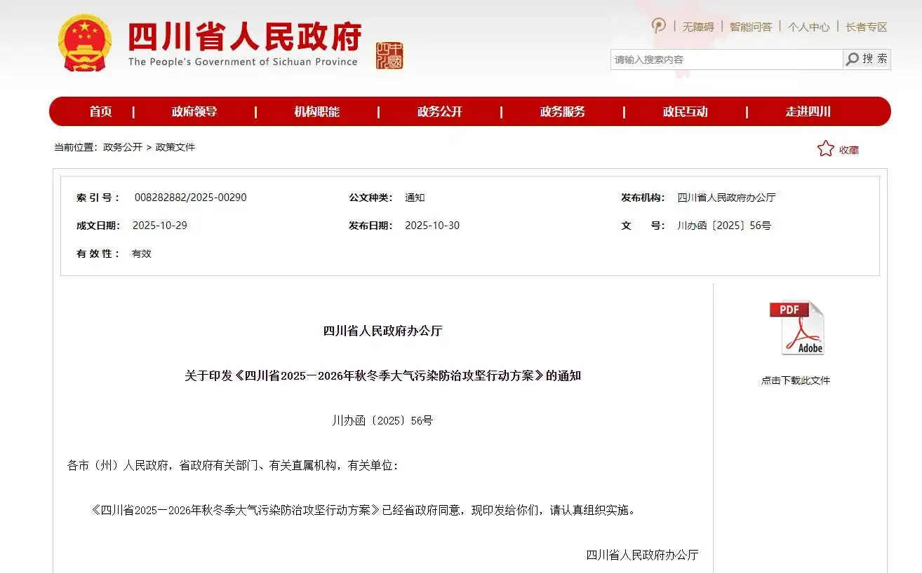 重點聚焦四大領(lǐng)域 四川發(fā)布秋冬季大氣污染防治攻堅行動據(jù)四川省人民政府網(wǎng)站消息,為全力打好秋冬季大氣污染防治攻堅戰(zhàn),高質(zhì)量完成大氣“十四五”收官目標任務,實現(xiàn)“十五五”順利開局,10月..[详情]